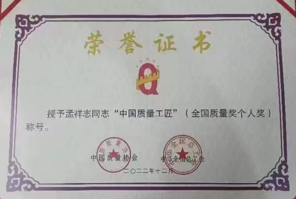 據了解,全國質量獎是經黨中央、國務院同意,由中國質量協會負責承辦,向在實施質量強國戰略中做出突出貢獻的組織、項目和個人授予的在質量方面的崇高榮譽。全國質量獎每兩年評選一次,其中,“中國質量工匠”主要授予恪守職業道德、崇尚精益求精,在本職崗位上為質量提升做出非凡努力、取得突出成績的各行業一線工作者。