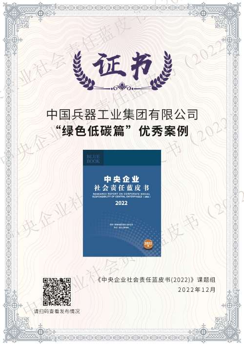 兵器工業集團綠色低碳案例入選《中央企業社會責任藍皮書(2022)》 |