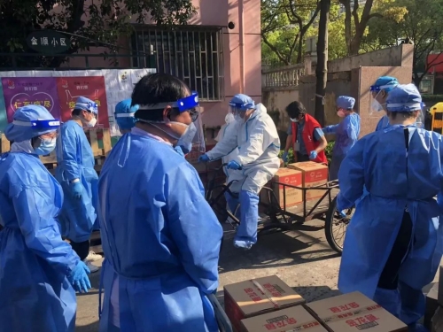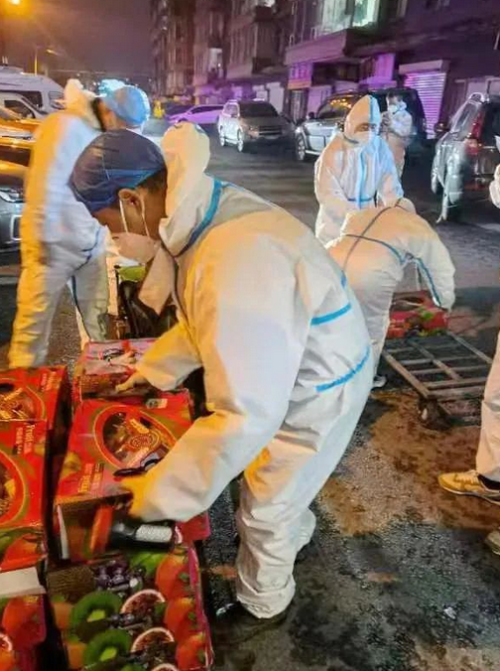 為解決物資分發量大、社區工作人員不足的問題,在吉林長春,東北工業集團奧威公司組建志愿服務隊,下沉社區開展志愿服務活動?!拔镔Y到了,大家到廣場集合……”早晨6點,志愿者們對物資進行卸車、清點、消毒,并派送到社區各個單元,有時他們連續七八個小時工作,只為盡早把物資送到居民手中。