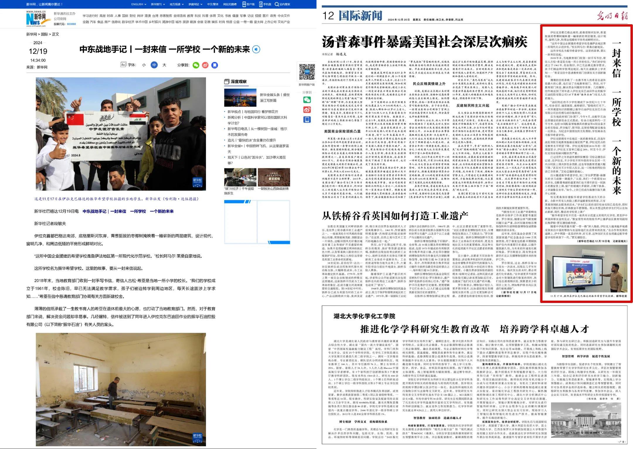 新華社、《光明日報》報道北方公司振華石油海外項目踐行社會責任:一封來信 一所學校 一個新的未來