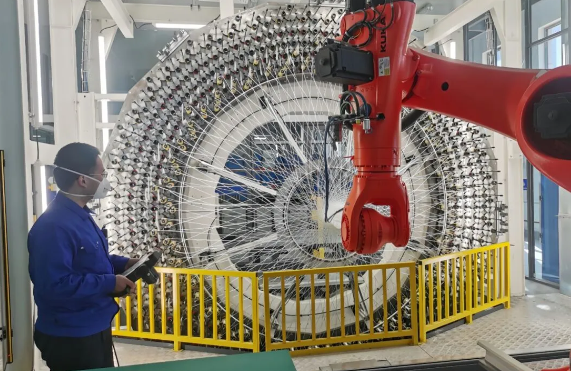 材料院53所科研人員利用三維編織機進行某預成型體制備實驗,持續提升產品性能指標。